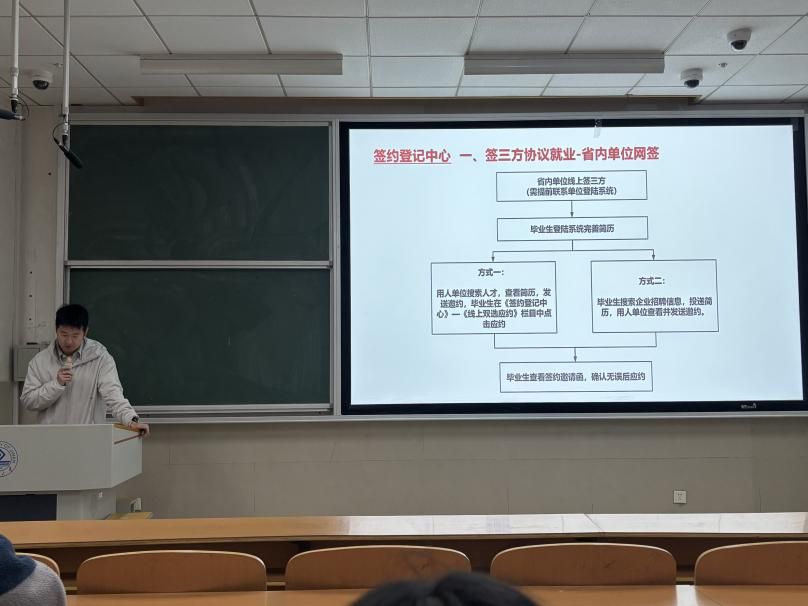 政策解读环节,李文超聚焦国家及山东省重点政策,介绍“三支一扶”“西部计划”等基层项目,说明自主创业补贴、税收减免、就业见习补贴的申领条件,同时梳理境内升学、自由职业等不同路径的政策适配要点,确保毕业生懂政策、享红利。