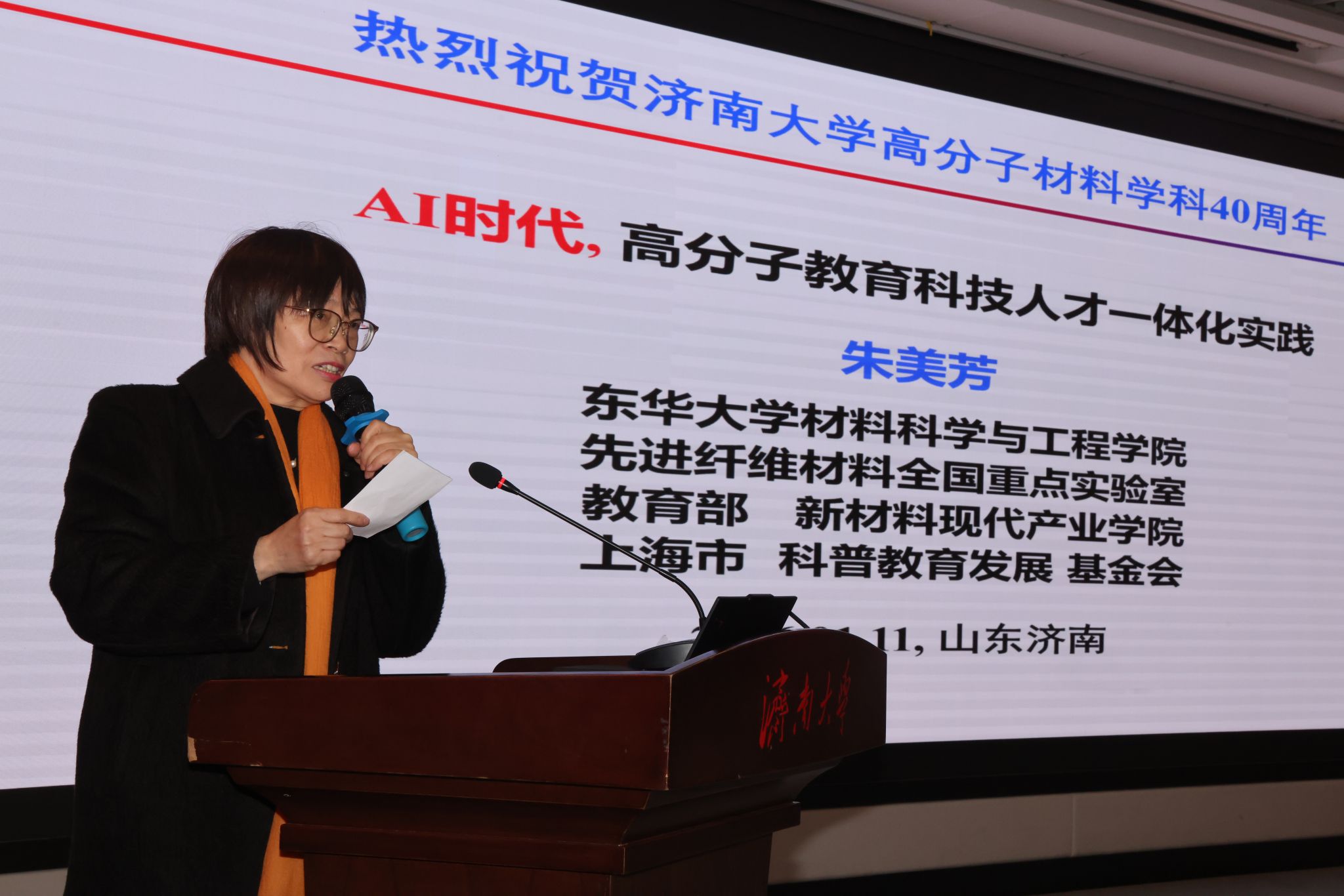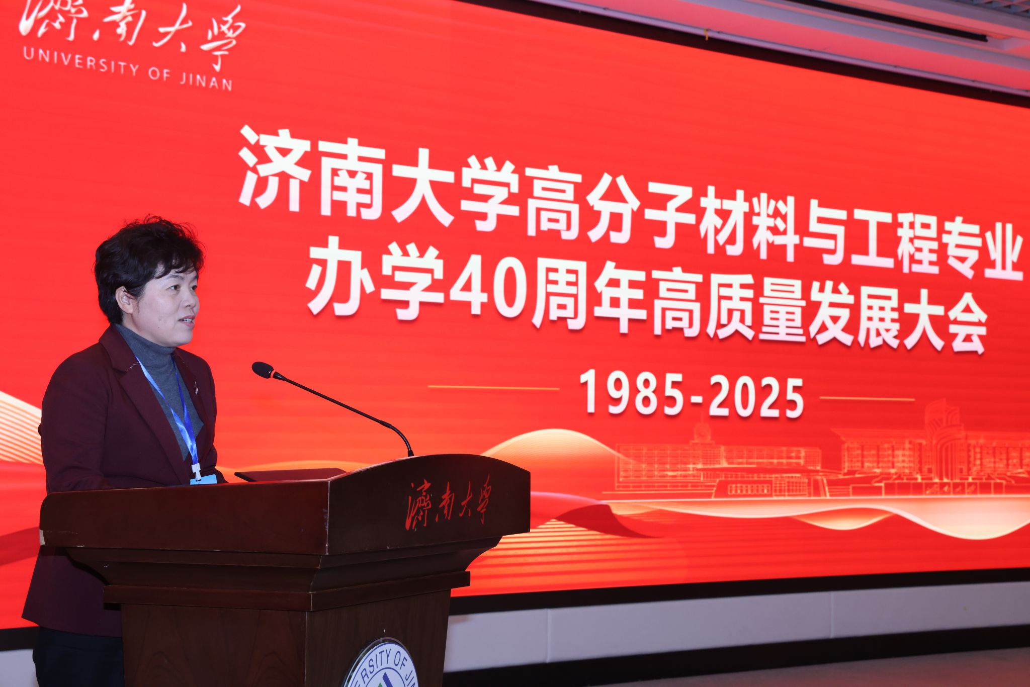 刘春华在讲话中首先向莅临大会的各位领导、各位专家,向从全国各地返校的校友们,表示最热烈的欢迎。她指出,世俱杯买球官网网站作为山东省人民政府和教育部共建的综合性大学、山东省高水平大学“冲一流”建设高校,学科门类齐全、师资力量雄厚、科研平台优质,拥有9个ESI全球前1%学科(化学学科进入1‰)、7个一级学科博士点及众多省部级以上科研教学平台,在人才培养、科研创新、社会服务等方面成果丰硕,为国家和区域经济社会发展作出了重要贡献。新材料产业是国家战略性产业,高分子材料作为其核心分支,发展水平直接关系到高端制造等关键领域的自主可控,本次大会聚焦专业高质量发展,高度契合国家战略与高等教育内涵式发展要求。她强调学校将进一步强化特色优势、深化产教融合,努力将高分子材料与工程专业建设成为高素质人才培养的高地,高水平科研成果涌现的源泉,高质量社会服务的窗口。最后她恳请专家们继续支持世俱杯买球官网网站发展,继续支持高分子材料与工程专业的建设。