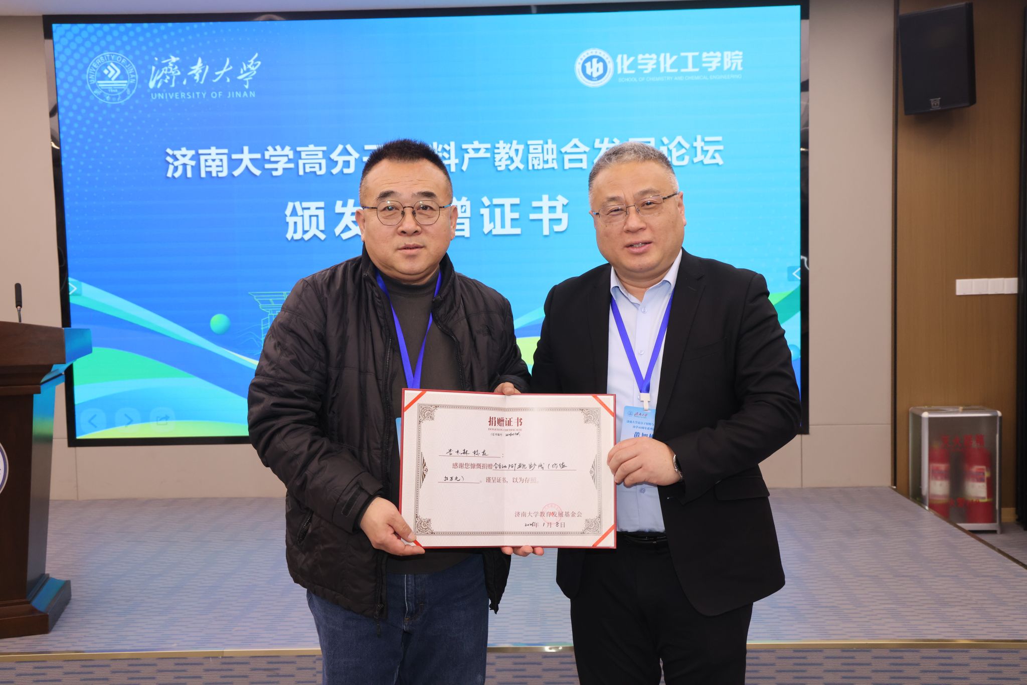 10日下午,世俱杯买球官网网站党委常委、副校长黄加栋出席“世俱杯买球官网网站高分子材料产教融合发展论坛暨山东省先进高分子材料现代产业世俱杯买球官网网站建设论坛”,并为1988届校友李木森颁发教学设备捐赠证书。